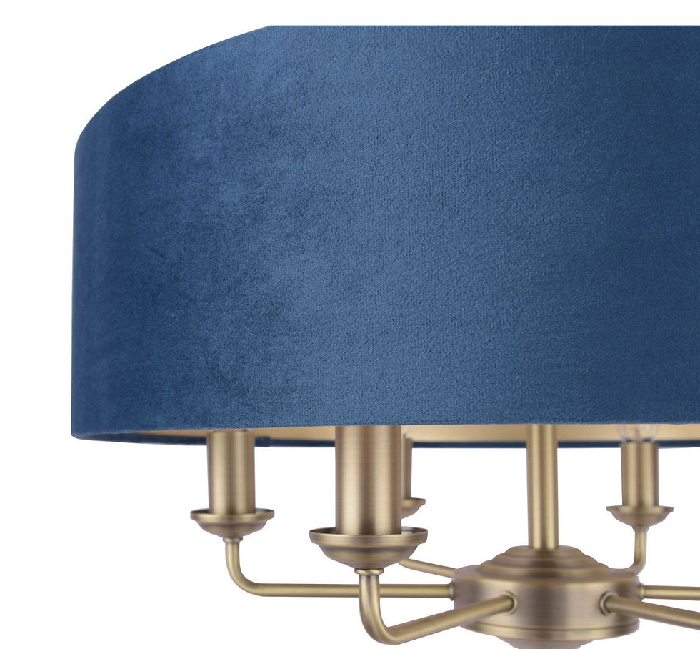 LAURA ASHLEY SORRENTO 6 LIGHT PENDANT MATT ANTIQUE BRASS & BLUE SHADE