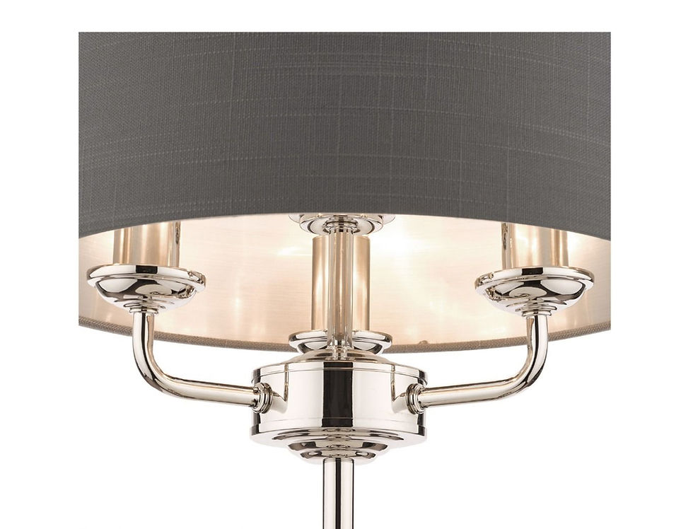 LAURA ASHLEY SORRENTO 3 LIGHT TABLE LAMP POLISHED NICKEL WITH CHARCOAL SHADE