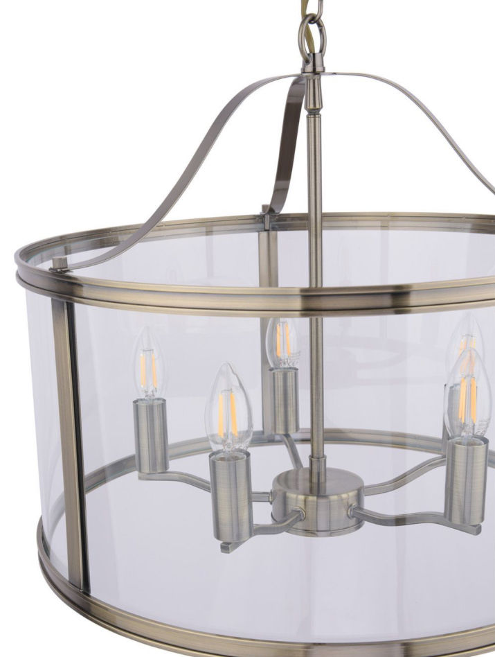 LAURA ASHLEY HARRINGTON 5 LIGHT PENDANT ANTIQUE BRASS & GLASS